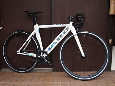 ハローから新登場のピストバイク・・・フリースタイルBMXの元祖メーカーだからフリースタイルピストかと思いきやガチで走り志向、エアロ形状の軽量アルミフレームにはこのクラスでは珍しいコラムまでカーボン製のフルカーボンフォークを組み合わせ、リムハイトの高いエアロホイールを装着。固定ギヤのみですがシングルフリーも装着可能でホイールの向きを入れ替えて切り替えて使えます。前後にロードと同じブレーキを装備しているため安全に合法的に公道で乗れるピストバイクです。だからHAROらしいのはBMXのようにポップなグラフィックだけ、ガチなスピードバイクを気軽に楽しんで欲しいです。